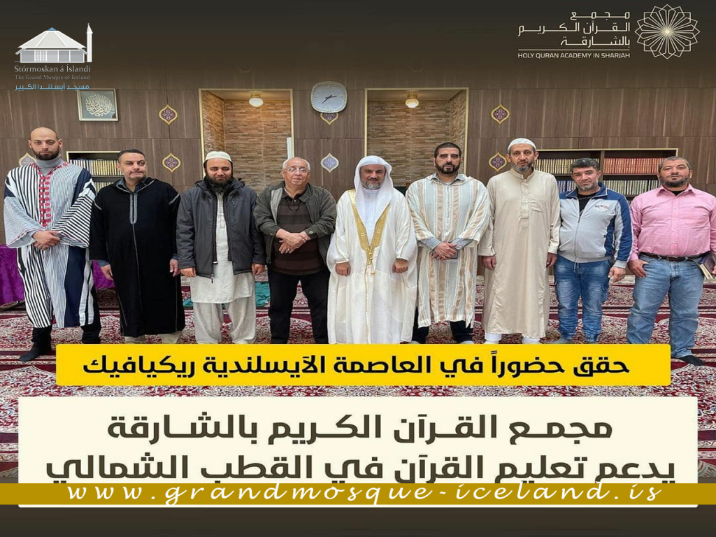 قام وفد علمي وأكاديمي من مجمع القرآن الكريم بالشارقة بزيارة إلى العاصمة الأيسلندية ريكيافيك في القطب الشمالي في إطار جهود المجمع الرامية إلى نشر وتعليم القرآن الكريم وعلومه وتأهيل مدرسي القران في الدول البعيدة عن العالم الاسلامي والتي تحتاج إلى دعم استثنائي.